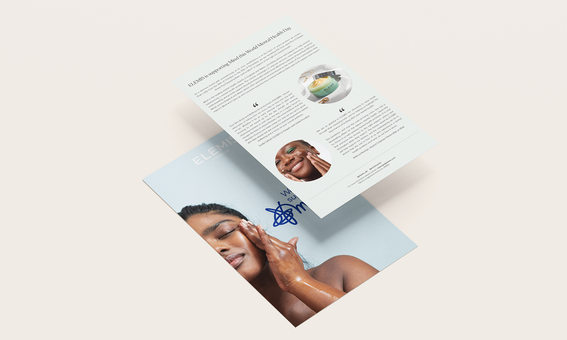 A collaboration between Elemis and Mind Charity for World Mental Health day, to promote the importance of self care and mindfulness and to empower people to care for themselves inside and out.